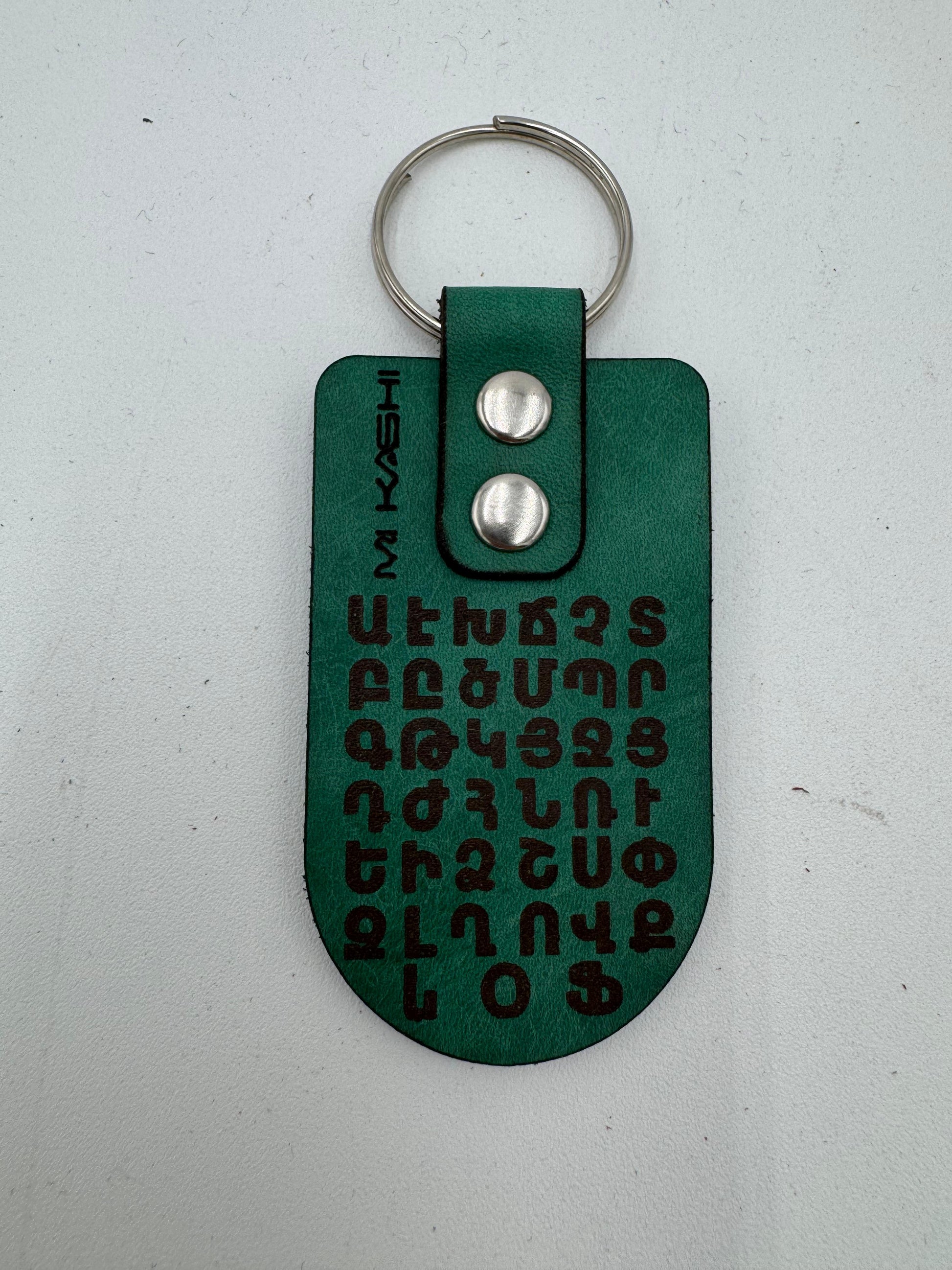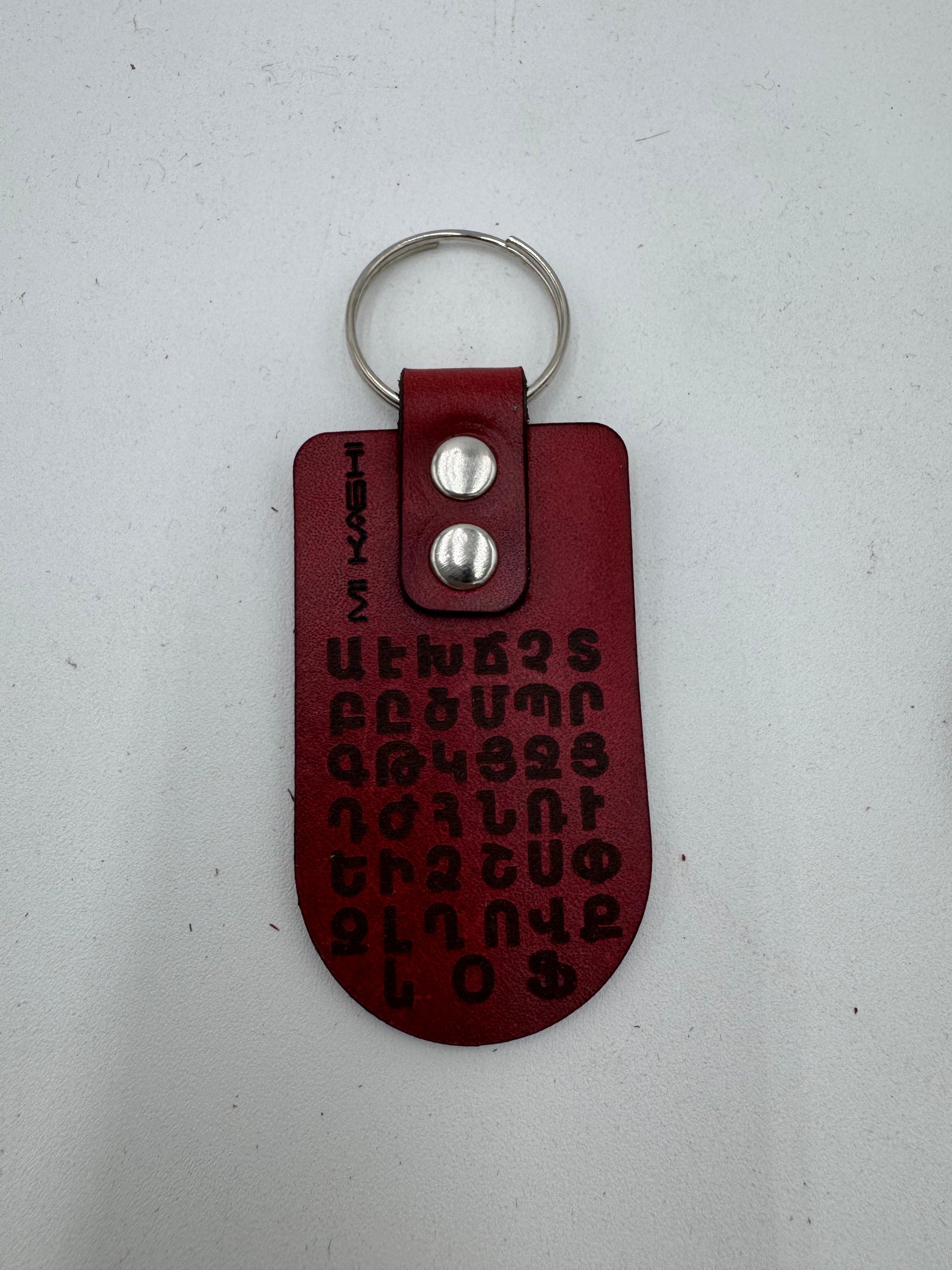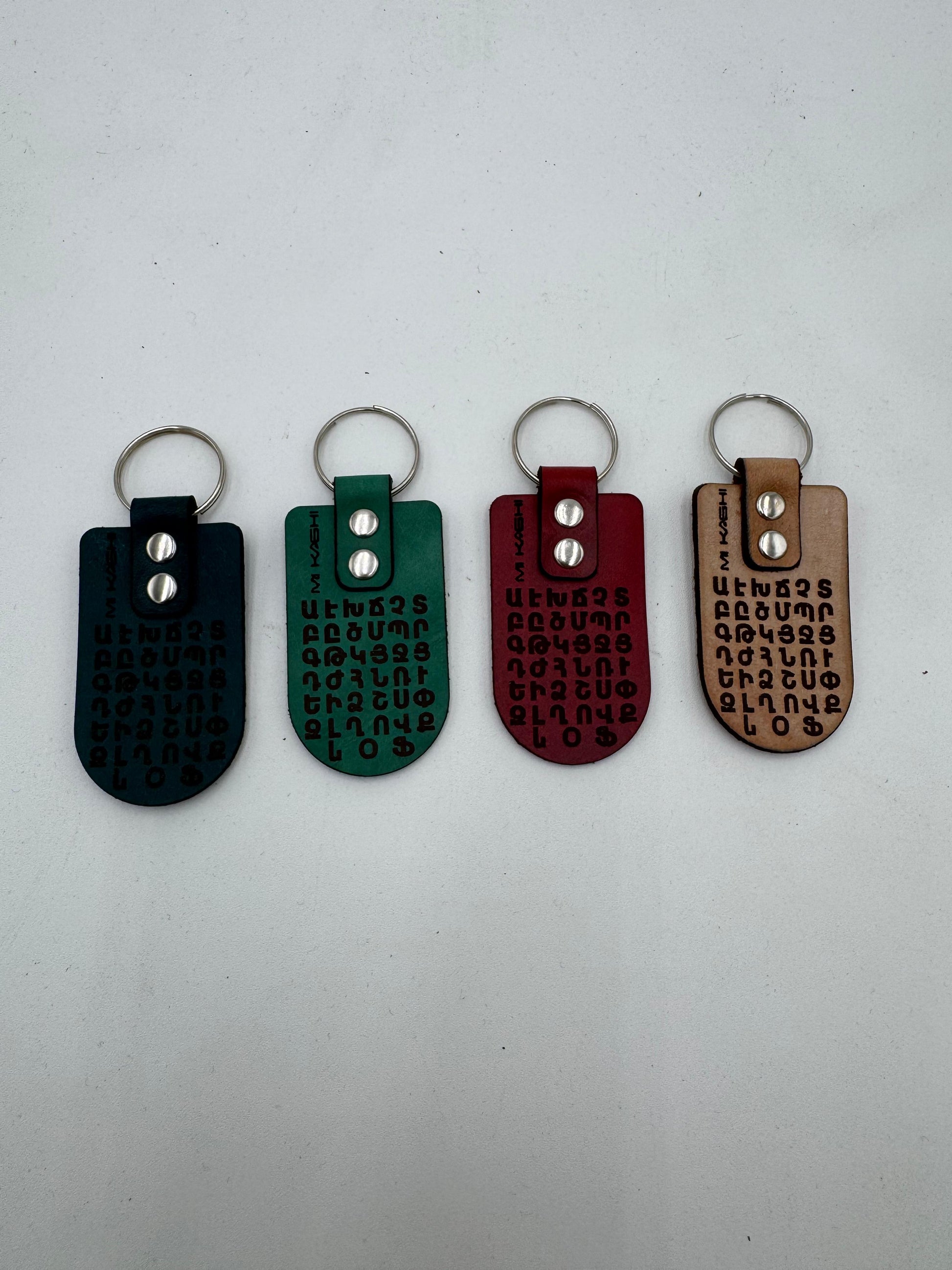 Armenian Alphabet Leather Keychain – Premium Handmade Key Ring, Հայերեն Letters Design, Durable Genuine Leather Key Holder, Unique Armenian Gift for Men & Women