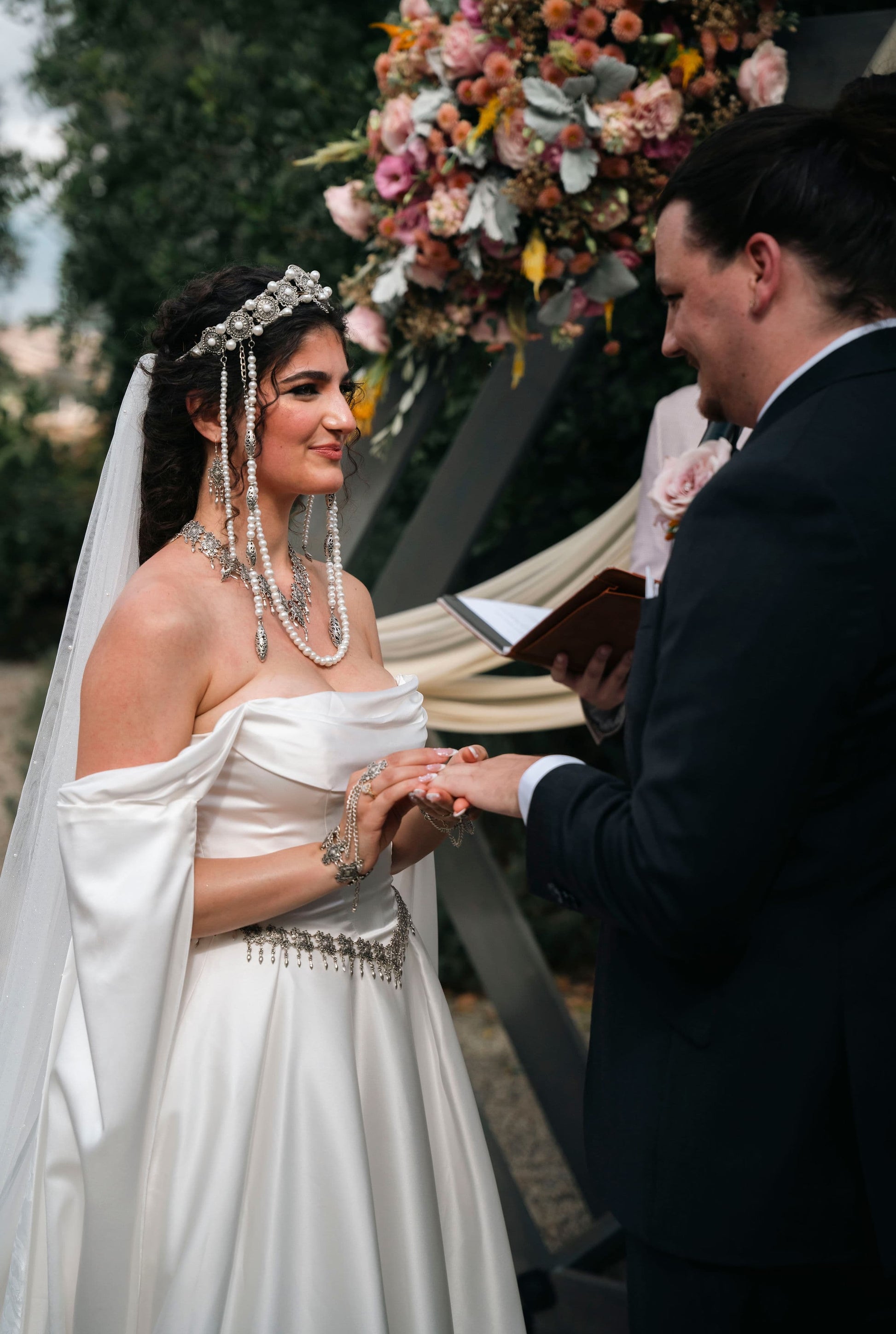 Add a touch of elegance to your special day with this handcrafted set of headpiece, bracelet, and belt. Made with zinc alloy and lustrous perlamotor pearls, it’s a timeless choice for weddings or formal occasions.